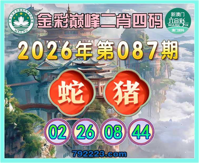 087期:《金彩巅峰》 🎖️二肖四码🎖️【猪】【02.26.08.44】开:蛇26