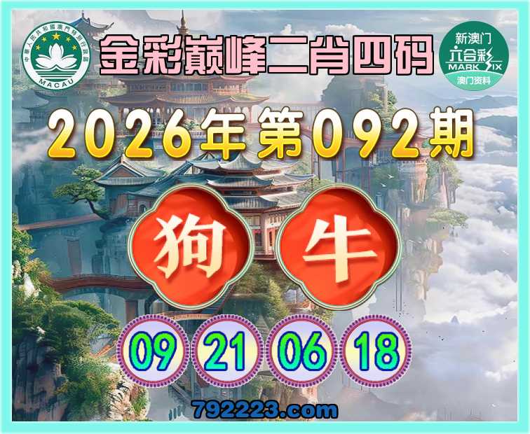 092期:《金彩巅峰》 🎖️二肖四码🎖️【狗】【09.21.06.18】开:牛06
