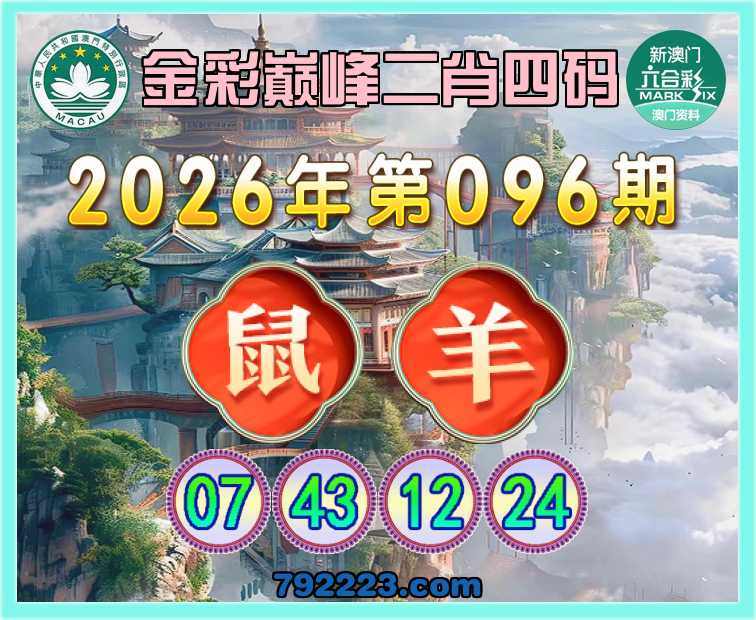 096期:《金彩巅峰》 🎖️二肖四码🎖️【羊】【07.43.12.24】开:鼠43