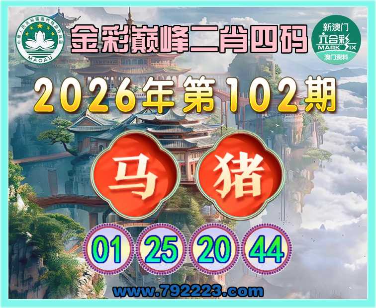 102期:《金彩巅峰》 🎖️二肖四码🎖️【马】【01.25.20.44】开:猪20