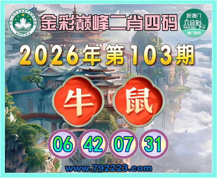 103期:《金彩巅峰》 🎖️二肖四码🎖️【鼠】【06.42.07.31】开:牛06
