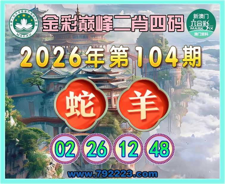 104期:《金彩巅峰》 🎖️二肖四码🎖️【蛇羊】【02.26.12.48】开:马01