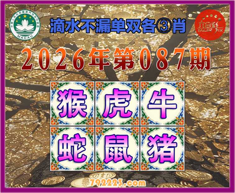 087期: 滴水不漏 🧩单双各③肖🧩【猴.虎.牛..鼠.猪】开:蛇26