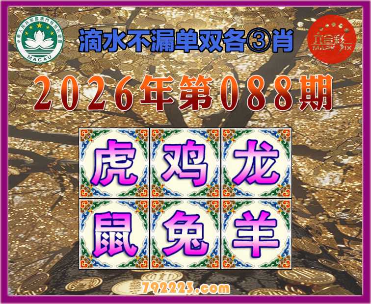088期: 滴水不漏 🧩单双各③肖🧩【虎.鸡..鼠.兔.羊】开:龙27