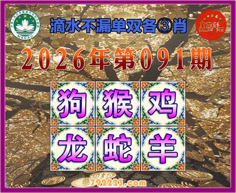 091期: 滴水不漏 🧩单双各③肖🧩【狗.猴.鸡.龙.蛇.羊】开:马37