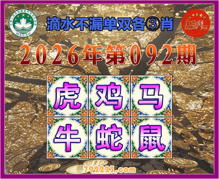 092期: 滴水不漏 🧩单双各③肖🧩【虎.鸡.马..蛇.鼠】开:牛06
