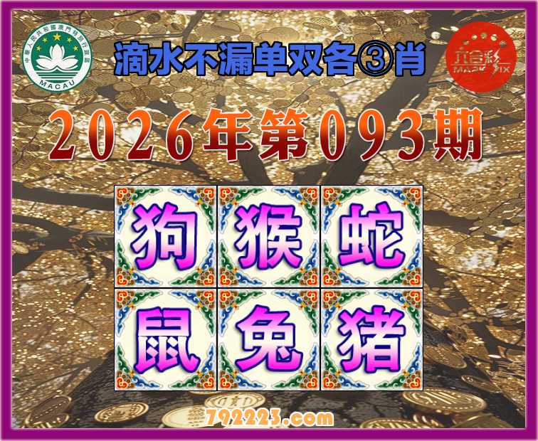 093期: 滴水不漏 🧩单双各③肖🧩【狗.猴.蛇.鼠..猪】开:兔40