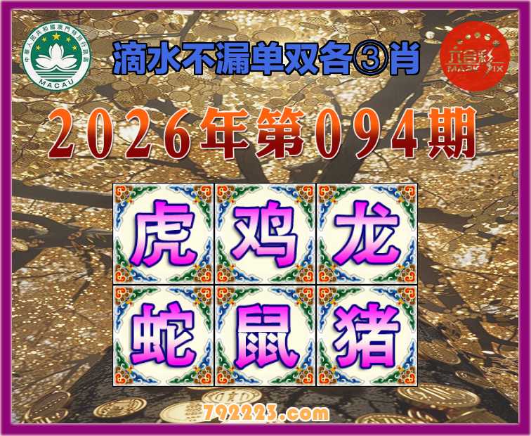 094期: 滴水不漏 🧩单双各③肖🧩【.鸡.龙.蛇.鼠.猪】开:虎17