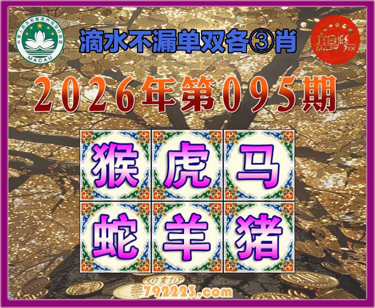 095期: 滴水不漏 🧩单双各③肖🧩【.虎.马.蛇.羊.猪】开:猴35