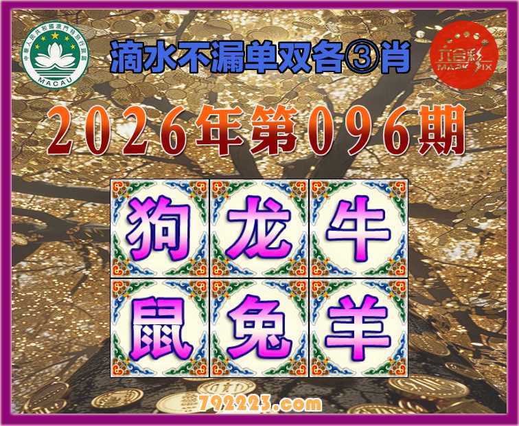 096期: 滴水不漏 🧩单双各③肖🧩【狗.龙.牛..兔.羊】开:鼠43