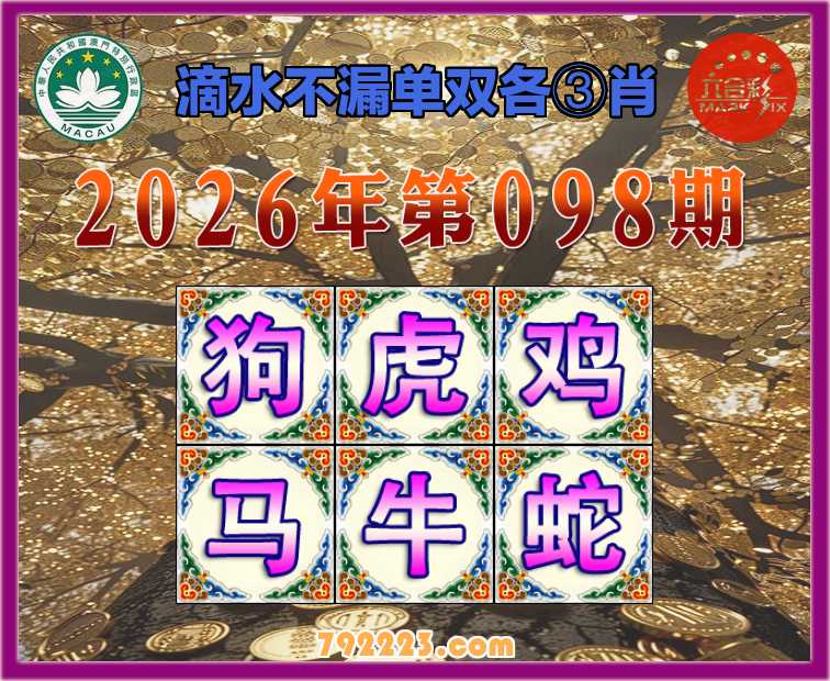 098期: 滴水不漏 🧩单双各③肖🧩【狗..鸡.马.牛.蛇】开:虎17