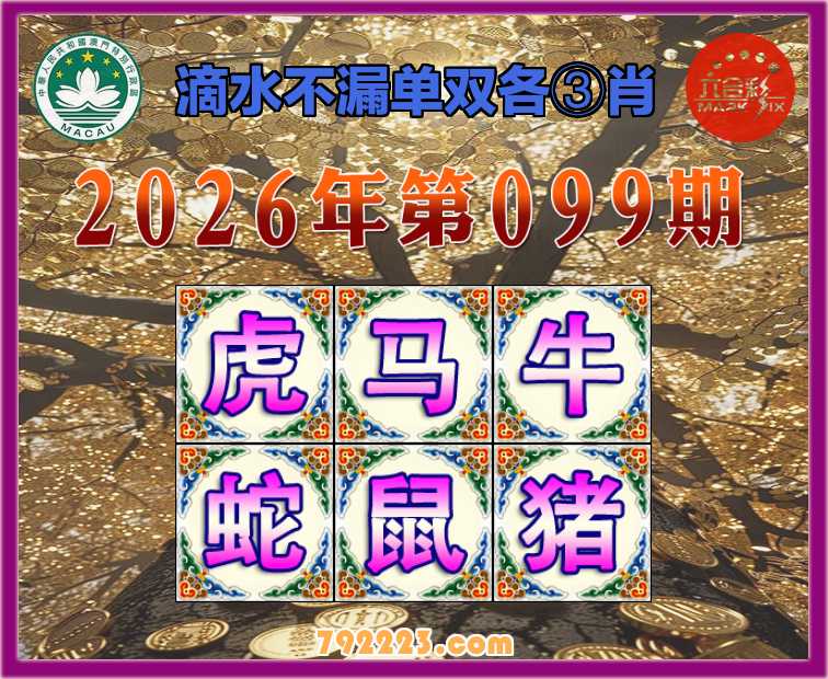099期: 滴水不漏 🧩单双各③肖🧩【虎.马.牛.蛇.鼠.猪】开:羊12