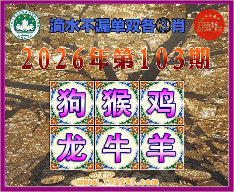 103期: 滴水不漏 🧩单双各③肖🧩【狗.猴.鸡.龙..羊】开:牛06
