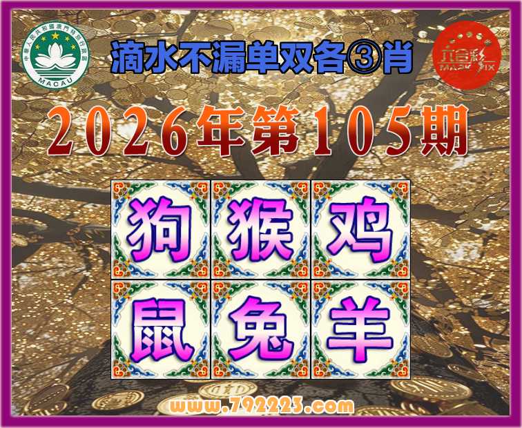 105期: 滴水不漏 🧩单双各③肖🧩【狗.猴.鸡.鼠..羊】开:兔28